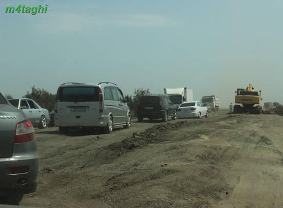 یک ساعتی پس از لنکران یک جاهایی جاده در دست تعمیر است. حدود نیم ساعت را نیز در جاده ای خاکی میپیماییم و سپس وارد جاده ای هموار میشویم که تبدیل به اتوبان میشود و نوید نزدیک شدن به پایتخت را میدهد.