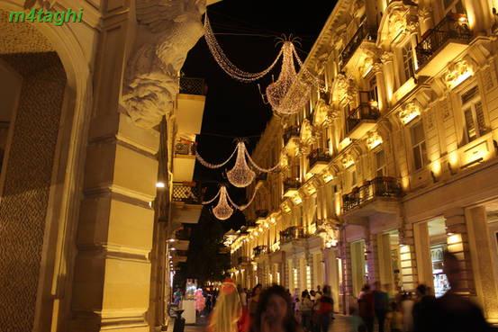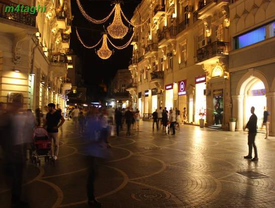 سپس راهی خیابان تارگوای که نزدیک موزه نظامی است میشویم. شبهای تارگوای بسیار زنده و زیباست. جماعتی از گردشگران و مردم باکو شب هنگام برای تفریح و آرامش به این مکان که میدان فواره ها نیز نام دارد می آیند.