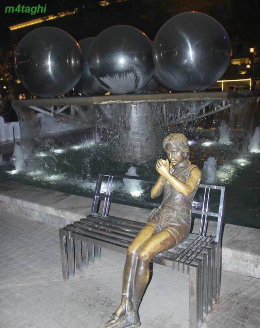 مینشینم روی یکی از نیمکتها و به رقص فوار ها و موسیقی زیبای آذری و همهمه شادی مردم گوش میدهم و چشم میدوزم به مجسمه دخترکی که روی نیمکتی نشسته. غم عجیبی سراپای وجودم را فرا میگیرد و بغضی که این چند روز توی گلویم است راهی به بیرون باز میکند....