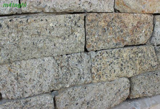 نخستین چیزی که توجه ما را به خود جلب میکند مصالح به کار رفته در دیوار برج و باروی قلعه است که شامل لاشه سنگهای رسوبی ستبر میباشند که لابلایشان به وفور فسیل موجودات دریایی به چشم میخورد.