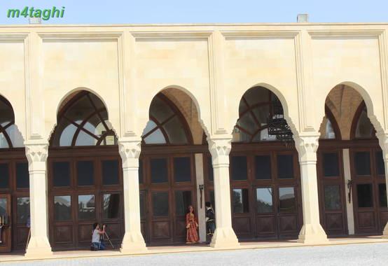پس از عبور از سردر ورودی به محوطه ای بزرگ وارد میشویم که ساختمانی مجلل با ستونهای زیبا در آن خودنمایی میکند.