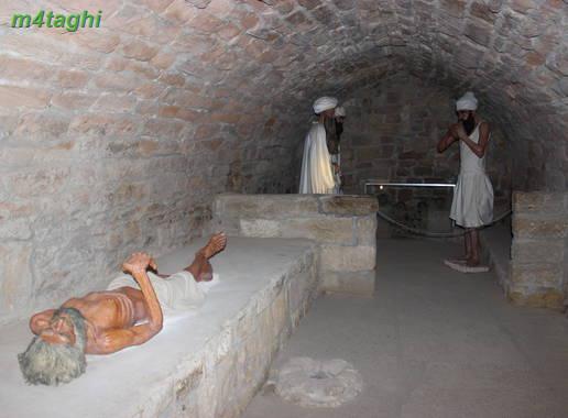 در یکی از اتاقها یک راهب به سبک هندوها در حال ریاضت کشیدن است و مرا به یاد مرتاضهای هندی می اندازد.
