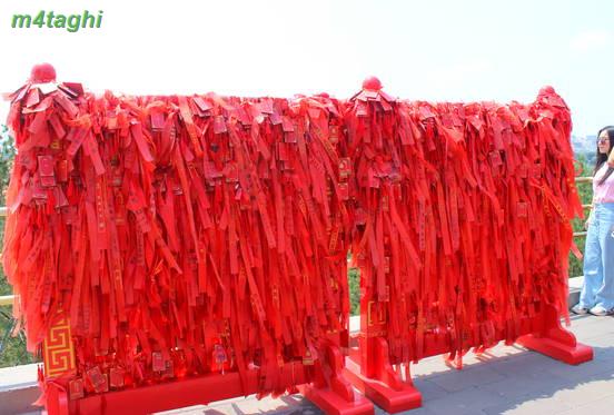 روبانهای قرمز گره زده شده بر ورودی معبد نشان از قداست این مکان در نزد چینی ها دارد. این روبانها را در بسیاری از اماکن مقدس طبیعی و تاریخی چین میتوان دید.