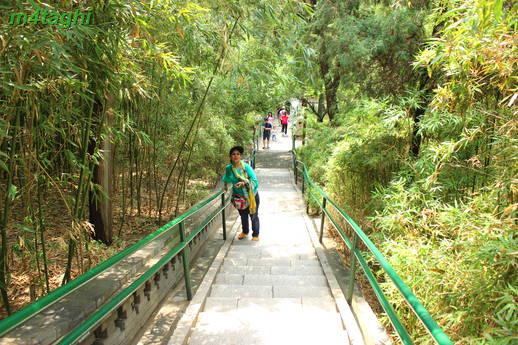 بلیت ورود به باغ را خریداری کرده و پس از پیمودن تعداد زیادی پله در مسیر بامبوهای زیبا به معبد باشکوه باغ میرسیم.
