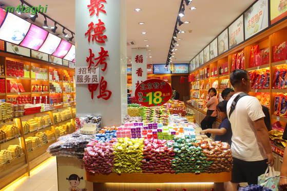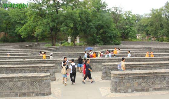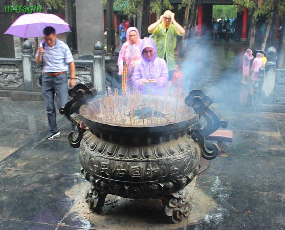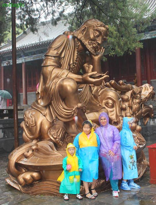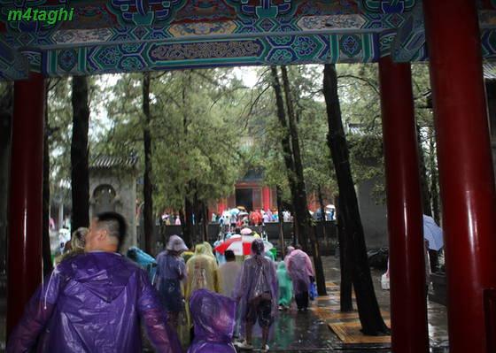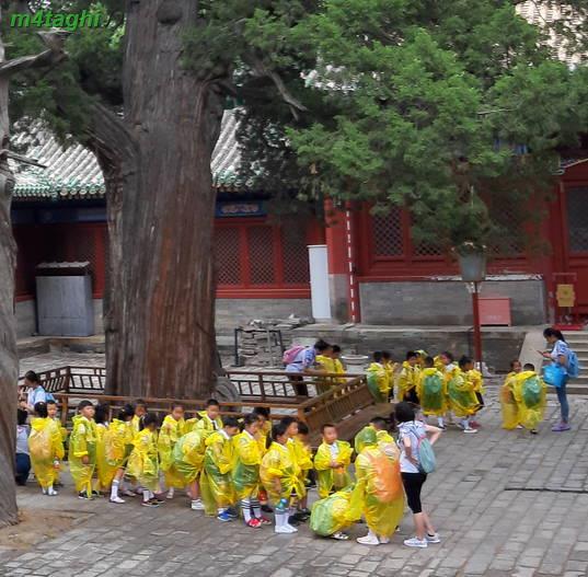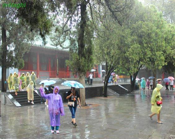 اولش تصمیم میگیریم تا بند آمدن باران صبر کنیم ولی این بارانی که ما میبینیم حالاحالاها بند بیا نیست. محوطه بسیار بزرگ است و گشت کامل آن یک نصف روز میطلبد؛ پس تصمیم میگیریم وقت را هدر ندهیم و با خرید دو پانچو از فروشگاه، خود را مجهز کرده و راه بیفتیم؛ کاری که اغلب چینی ها از پیر وجوان و خرد و کلان انجام میدهند.