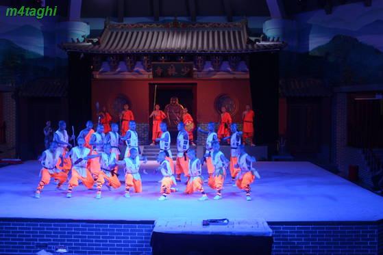 حالا نوبت بازدید از مدرسه کنگ فو است. پس از نیم ساعت ایستادن در صف ورود به تالار نمایش، وارد سالن شده و شاهد نمایش زیبای کنگ فو کاران نوجوان به همراه موسیقی زیبا و اصیل چین باستان هستیم.