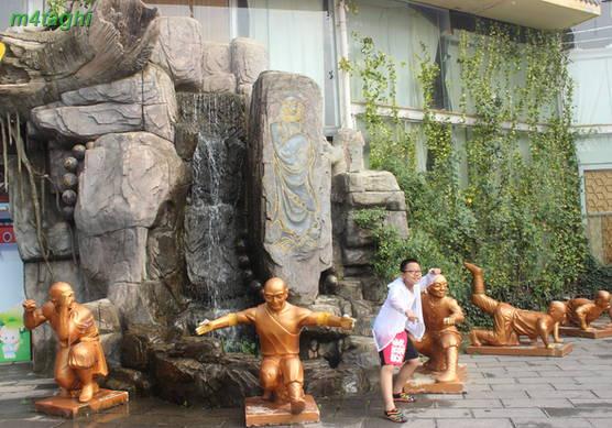 پس از عبور از دروازه اولیه و پیمودن حدود یک ربع مسیر به نخستین مکان دیدنی مجموعه (مدرسه کنگ فو) میرسیم ولی ازآنجاییکه نمیدانیم معبد و جنگل پاگوداها چقدر وقتمان را میگیرد تصمیم میگیریم دیدن مدرسه کنگ فو را به مسیر برگشت موکول کنیم.