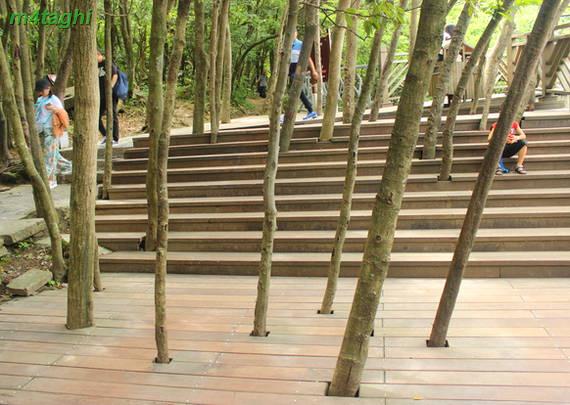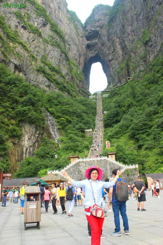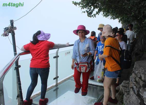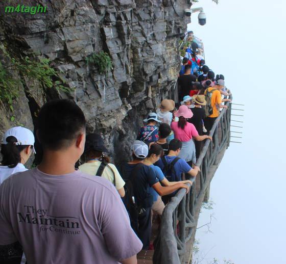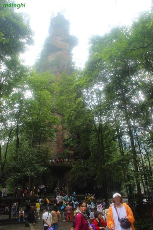 پس از بالا رفتن از آسانسور به جایگاهی میرسیم که چنین منظره ای را میتوانیم ببینیم. درواقع آسانسور شما را به طبقه بالاتری از نقطه شروع کوهستان میبرد و شما با مقداری پیاده روی و سپس استفاده از اتوبوسهای طبقه بالاتر کوهستان میتوانید به بخشهایی دیگر ازجمله کوه تیانزی و صخره هللویا و... برسید و حالا بشنوید از خاطره خنده دار و به اصطلاح سوتی ما از سوار شدن بر آسانسور صداژدها.
