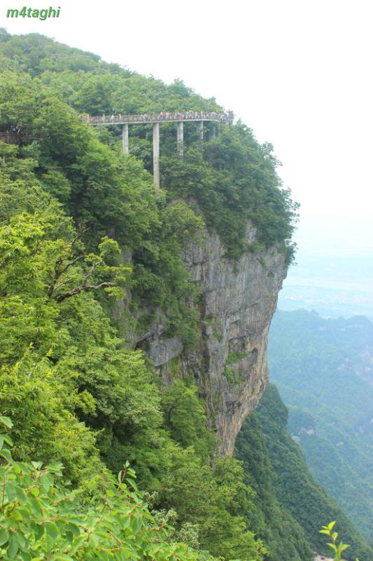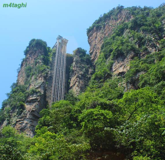 اصلا اعجوبه هایی هستند این جماعت چینی! فکرش را کنید آسانسوری ساخته اند که آدم را بر بلندای صخره ای به شیب نود درجه با ارتفاع 335 متر میرساند آنهم کمتر از دو دقیقه !!! دیواره های آسانسور از جنس شیشه است و به آدم این فرصت را میدهد که درحین بالارفتن فضای اطراف را خوب نظاره کند. این آسانسور با سه اتاقک، بزرگترین آسانسور فضای باز جهان است و در کتاب گینس ثبت شده.