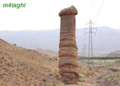 تا قلعه بهستان راه زیادی نمانده که ناگهان یک ستون عجیب و غریب در سمت چپ جاده توجه ما را به خود جلب میکند؛ برجی شگفت انگیز که تک و تنها در اطراف جاده جاخوش کرده و شبیه یک مناره بلند است.خودتان میتوانید بلندی اش را در مقایسه با تیر برقها ببینید