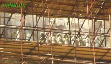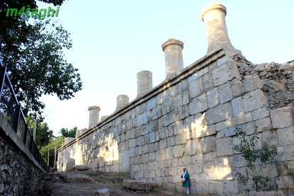 این ستونهای سنگی با آن درخشش عجیب و ماورایی که از اعماق تاریخ میاید شاید سالمترین و پرابهت ترین بخش بنا باشد؛ ستونهایی که نمونه اش را در هیچ بنای تاریخی دیگری نمی توان یافت. ستونهایی که بر فراز دیواری به ضخامت پنج متر بنا گردیده اند