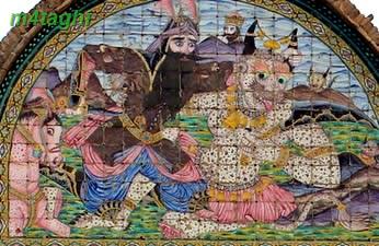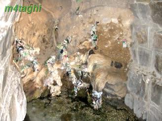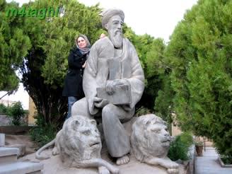 از درب مقبره که وارد میشوی پس از عبور از پلکان باغ، مجسمه خرقانی را میبینی با چشمانی نافذ، کتاب بر دست و دو شیر نشسته و رام شده در دو طرفش! در داستانها آمده که این دو شیر همواره مرید و در خدمت ایشان بوده اند.