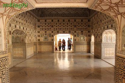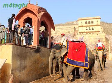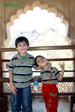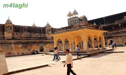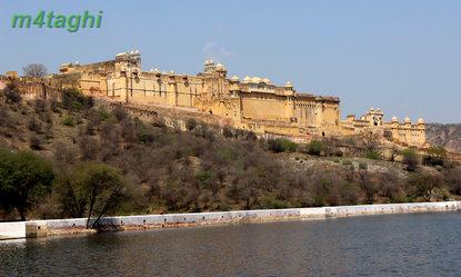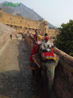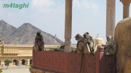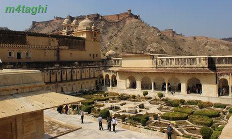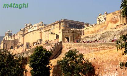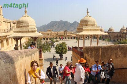 بعد از صرف ناهار دوباره راهی شهر صورتی میشویم تا از سازه های زیبای منحصربفردش دیدن کنیم برای اینکار یک توک توک کرایه کرده و همان اول کار سنگهایمان را با راننده اش وامیکنیم که هرکجا که لازم باشد، باید توقف کند تا ما در صورت تمایل، گشت کوچکی در نقطه موردنظر بزنیم. اولین جایی که به راننده توک توک فرمان ایست میدهیم پای تپه ای است در حوالی شهر صورتی که یک قلعه باشکوه قدیمی بر فرازش خودنمایی میکند و در کنارش نیز معبدی مرمرین میدرخشد
