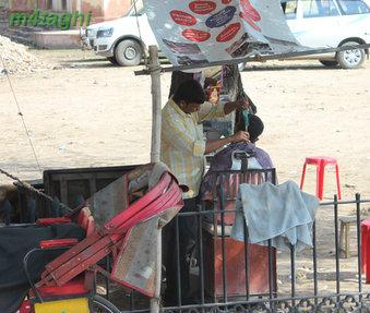 و آرایشگری که بساط کارش را توی کوچه و خیابان پهن کرده!