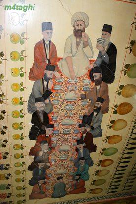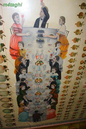 دیوارها و سقف بیشتر اتاقها و راهروها نیز با رنگهای طبیعی متنوع نقاشی شده اند. نیمی ایرانی با طرح گل و بوته و نیمی با نقوش فرنگی.