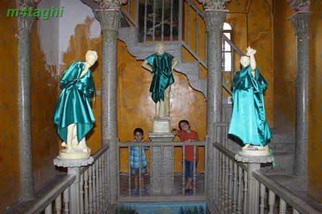 از این بالا، چشمم به مجسمه ها و گچبری های زیبای پیشانی عمارت اصلی می افتد. به جرأت میگویم که باوجودیکه از بسیاری از کاخ موزه ها و عمارت های اشرافی ایران بازدید کرده ام، اینهمه زیبایی و هنر حجم را در جایی ندیده ام.