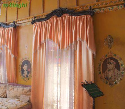 پردها و دکوراسیون اتاقها هم با رنگ دیوارها سنخیت دارد هرچند که این پرده ها با الهام از پرده های قدیمی و با پارچه های ساتن ارزان قیمت دوخته شده اند و صد البته که پرده های واقعی از ساتن ناب و مخمل اعلی بوده اند.