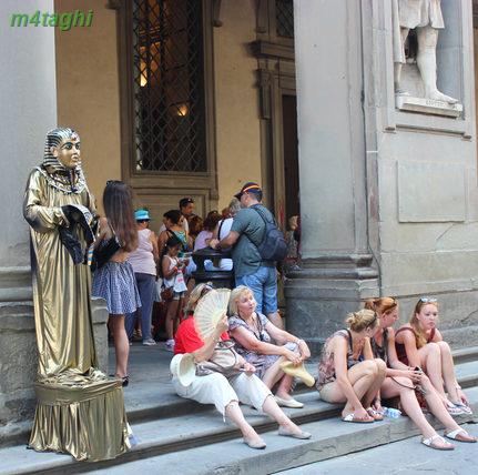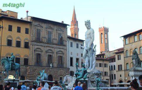 دورتادور میدان را کافه ها و گالری ها و فروشگاهها فرا گرفته اند. جلوی بسیاری از کافه ها صندلی چیده شده و هیاهوی سرخوش گردشگران و بق بقوی کبوترها در نوای خوش موسیقی هنرمندان خیابانی گم میشود.