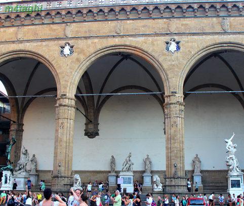 همینکه از ساحل به سمت میدان می آیی با دو ستون سنگی ستبر مواجه میشوی که انگار نگهبانان ابدی دروازه های نامرئی میدانند. این ستونها حدود دویست سال پیش به میدان اضافه شده اند. روی ستون سمت راست مجسمه قدیس سنت تئودور قرار دارد درحالیکه نیزه ای در دست دارد و تمساحی بر زیر پا؛ نمادی از پیروزی خیر بر شر و زیبایی بر پلیدی.