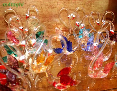 اما به جز ماسک، ونیز نماد دیگری نیز دارد. این مجسمه های نازک تن بلورین در جزیره مورانو یکی از 118 جزیره ونیز تولید میشوند و از محبوبیت زیادی بین گردشگران برخوردارند. ما هم خیلی مایلیم که یکی از این قوهای زیبای بلورین را بخریم و در خانه از آن مراقبت کنیم ولی دو مانع اصلی داریم: قیمت نجومی آنها و ترس از شکسته شدن شان.برای همین هم تنها به خرید چند ماسک به رسم سوغات بسنده میکنم.