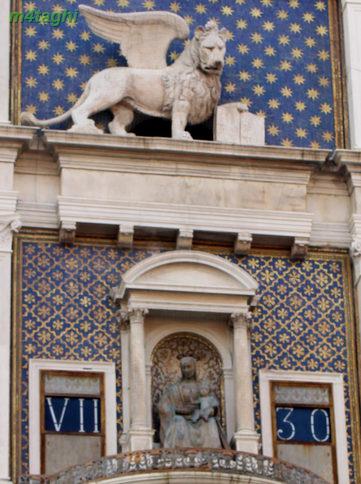 بر بلندای ستون سمت چپ هم شیربالداری به چشم میخورد. شیر بخصوص از نوع بالدارش در بسیاری از فرهنگ ها و تمدنها نشانه اقتدار است. این دو ستون به گونه ای ساخته شده اند که وقتی از بینشان به دریا مینگری گویی منظره تالاب روبرو و جزیره کوچک سن جورجیو قاب گرفته میشود.