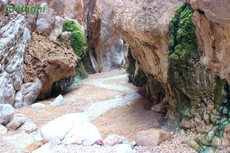 با اندک فاصله ای از جاده اصلی به پای کوه میرسیم. گویی طبیعت سخاوتنمد نایبند فرشی زمردین جلوی پای میهمانانش پهن کرده و نخل های سر به آسمان کشیده در این ظهر گرم، سایه شان را مهرمندانه روی سرمان گسترانده اند.