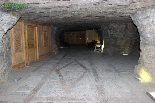 پس از اینکه بازدیمان از گوشه کنار مسجد به پایان میرسد، از طریق پلکانی که از جوار مسجد تا دهانه غار امتداد میابد وارد غار میشویم؛ فضایی بزرگ و امن که میتوان سیصد سال به دور از چشم اغیار در آن خوابید.