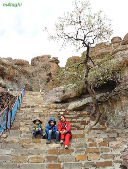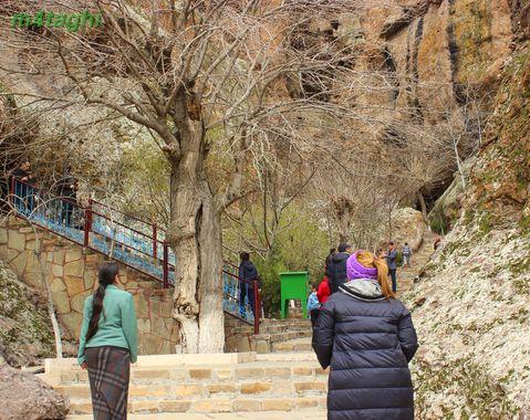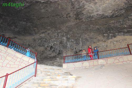 راننده خوش خلق ما اینجا هم منتظر بازگشت ما میماند. حالا باید این مسیر پلکانی را تا ورودی غار بپیماییم. محوطه، دارای امکاناتی از قبیل آلاچیق، بوفه، چایخانه، سرویس بهداشتی و... است و از قرار معلوم اهالی منطقه به طور مداوم برای زیارت و تفریح به اینجا آمد و رفت میکنند.