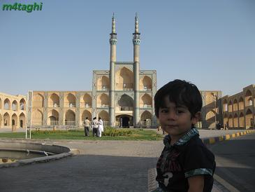 ایوان ستوندار آتشکده با آن ستونهای سنگی زیبا ابهت و عظمت ایران باستان را در یادها زنده میکند و تلفیق آن با معماری کویری نشان از ذوق سرشار طراح آن دارد .جلوی ساختمان آتشکده هم حوض بزرگ دایره ای شکلی قرار دارد که آب و آتش و خاک و آسمان و زمین را در قابی مدور نقش میزند و شاهکاری را خلق میکند که هر صاحب ذوقی را به تامل وا میدارد.بازدیدکننده ها هم به رسم دیگر حوضهای دنیا کف آن را با سکه های ریز و درشت پولفرش کرده اند و ارشیا هم توی این گیرو دار چون گدای سامری از ما سکه طلب میکند .