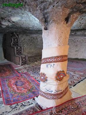 گشتمان در ارگ بم به پایان میرسد. موقع پایین آمدن از پله ها، چشمم به این هفت سین زیبا می افتد و حاجی فیروزش که طوری سرش را به دیوار تکیه داده که انگار هنوز از خواب شیرین بامدادی بیدار نشده. دلم نمی آید عکسی از آن نگیرم.