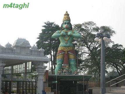 از معبد خارج میشویم در محوطه معبد بازارچه ای وجود دارد که زایران از آنجا سوغاتی میخرند بوی ادویه های تند هندی همه جای بازارچه به مشام میرسد درمحوطه زیبای معبد استخری با مجسمه های گوناگون خدایان وجود دارد و میمونها که بسیار مورد احترام واقعند در همه محوطه پراکنده اند مثلا" یک نمونه اش این مجسمه انسان میمون نما